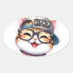 American Shorthair Katze mit Hüftmütze und Gl Ovaler Aufkleber
