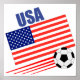 Zeigen Sie Ihren Stolz in der American Soccer-Mannschaft, indem Sie dieses Geschenk mit der amerikanischen Flagge, dem Ländernamen USA und einem Fußball, der über den Boden der Flagge fliegt, kaufen