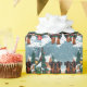 This festive design captures the joyful spirit of the holiday season, featuring an adorable dogs.Nestled in a winter wonderland, complete with a decorated Christmas tree, and beautifully wrapped presents. Snowflakes gently fall, adding a magical touch to the scene, while the vibrant colors of the holiday decorations create a warm and cheerful atmosphere.