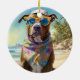 American Staffordshire on Beach, Sommergeschenk Keramik Ornament