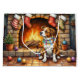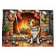 This warm and festive holiday illustration features an American Staffordshire Terrier sitting proudly beside a glowing fireplace, wrapped in colorful Christmas lights with stockings hanging above. The AmStaff’s strong build and sweet expression add charm to this cozy seasonal scene, making it perfect for breed enthusiasts and holiday décor lovers on Zazzle. A great Christmas gift idea for anyone who adores this loyal and affectionate breed.
