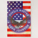 A unique antique style American stars and stripes flag with eagle ink overlay hand drawing custom jigsaw in red, white and blue hues. Personalize with your own choice of name and slogan, current example reads Puzzle Master, Papa Johnson. Original design and eagle bird of prey inked line art created by hand by Sarah Trett.