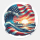 American USA Flag Beach Wave Sunset Patriotic Art Classic Round Sticker