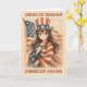 Diese Karte verbindet Vintagen Anime-Stil mit patriotischem Stolz, mit einem fröhlichen Mädchen, das in der amerikanischen Fahne verpackt ist und einen sternengesprenkelten Hut trägt, Set vor einem Hintergrund von schwingenden Rot, Weiß und Blau. Die Front hebt die bleibenden Werte und Freiheiten hervor, die die Nation definieren, während das Innere Raum bietet, um Ihre Botschaft zu personalisieren - sei es, um Widerstandskraft, Hoffnung oder die Ideale von Freiheit und Gerechtigkeit wollen. Diese Karte ist perfekt für jeden, der eine moderne, aufregende Haltung gegenüber dem amerikanischen Geist schätzt. Sie ist eine einzigartige Möglichkeit, Ihre Wertschätzung für die Prinzipien zu teilen, die uns alle verbinden.