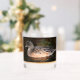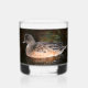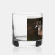 Whiskey Glas, das das Foto einer amerikanischen Wigeon-Ente zeigt, die auf der Oberfläche eines Teiches schwimmt. Auch bekannt als Baldpate. Auf einer Glasseite gedruckte Bilder.