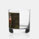Whiskey Glas, das das Foto eines männlichen amerikanischen Wigeon zeigt, der auf der Oberfläche eines Teiches schwimmt. Auch bekannt als Baldpate. Auf einer Glasseite gedruckte Bilder.