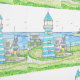Handgezeichnet Imaginary Americana Lighthouse Turqoise Wallpaper
