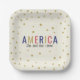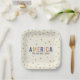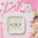Feiern Sie am 4. Juli stilvoll mit dieser lustigen Papiertafel. Mit der Phrase "AMERICA das Land, das Liebe ist" in einem lustigen Schriftart mit patriotischen Farben und goldenen Sternen. Passen Sie den Skripttext an.