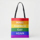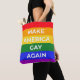 Dieses Kunstwerk enthält einen Regenbogen und den Satz "Make America Gay wieder".