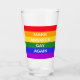 Dieses Kunstwerk enthält einen Regenbogen und den Satz "Make America Gay wieder".