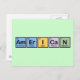 Das Wort Amerikanisch wird mit Elementen aus der Periodenwiedergabe geschrieben. Eine großartige Geschenkidee für patriotische Amerikaner - vor allem, wenn sie auch ein Interesse an Wissenschaft oder Chemie haben! Americium + Erbium + Jod + Calcium + Stickstoff = AmErICaN