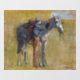 Die Sonne schlug gnadenlos auf der trockenen Landschaft nieder und warf lange, tanzende Schatten über die geparkte Erde. Eine einsame Figur, ein Cowboy mit verwitterter Haut und einem stählernen Blick, fuhr einen mächtigen Hengst durch die trostlose Weite. Sein Name war Silas, ein Mann mit wenigen Worten und weniger Emotionen, der in den harten Realitäten des amerikanischen Westens geschmiedet wurde. - Silas war für den Großteil seines Lebens ein Drifter gewesen und wanderte von einer Ranch zur nächsten, immer auf der Suche nach neuen Horizonten und neuen Herausforderungen. Nun fand er sich im Herzen der Badlands wieder, einem Land von zerklüfteter Schönheit und tödlicher Gefahr. Die Luft war dick mit dem Duft von Sagebrush und Staub, und der einzige Klang war das entfernte Donner-Gerücht. - Als er fuhr, drifteten Silas seine Gedanken zu dem Gemälde, das er in einem kleinen Stadtsaloon gesehen hatte. Es stellte einen Cowboy dar, der nicht anders als er selbst durch eine ähnliche Landschaft fuhr. Der Künstler Thomas Eakins hatte das Wesen des Westens, den rohen Power und die stille Einsamkeit eingefangen. - Silas hielt sein Pferd an und blickte am Horizont. Die untergehende Sonne warf ein goldenes Licht über das Land und verwandelte die raue Landschaft in ein atemberaubendes Spektakel. Er fühlte ein Gefühl des Friedens, eine Verbindung zum Land und zum Himmel. In diesem Moment verstand er die Absicht des Künstlers. Eakins hatte nicht nur ein Bild gemalt; er hatte eine Lebensweise gefangen, einen Geist, der so groß und dauerhaft war wie der Westen selbst. - Teil einer Reihe von Thomas Eakins (1887 bis 1888) namens "Study for Cowboys in the Badlands" Es zeigt einen Cowboy/Ranker mit seinem Pferd vor einem gelben Wüstenhintergrund. Der Autor starb im Jahr 1916, sodass dieses Werk in der Öffentlichkeit in den Vereinigten Staaten, weil es vor dem 1. Januar 1928 veröffentlicht (oder beim US-Copyright Office registriert) wurde.