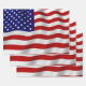 Set von drei 19" x 29" halbglänzenden Packpapierblättern mit einem Bild der amerikanischen Flagge. Siehe dazu passende Grußkarte, Etikett, Konfetti und rechteckige Aufkleber. Lesen Sie die gesamte Sammlung von Packpapier zum Unabhängigkeitstag unter der ZUHAUSE-Kategorie im Abschnitt HOLIDAYS.