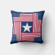Patriotisches Wurfskissen hat umgebenden weißen Stern der amerikanischen Flaggen auf blauem Hintergrund