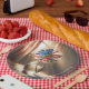 Amerikanische Flaggensicke in Glasvase Pappteller