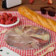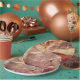 Amerikanische Frau mit Perlenschmuck und rosa Klei Pappteller