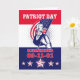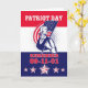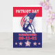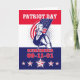 Plakatgrußkartenillustration eines revolutionären Soldaten Patriot Minuteman, der einen amerikanischen US Flaggeflaggen- und -wortpatriottag hält, erinnern sich am 11. September 2001.