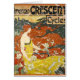 American Crescent Cycles ist eine Oldtimer-Plakatwerbung aus dem Jahr 1899. Die Farben des Posters sind hellorange und gelb. Das Design ist leicht gestört, als ob man es schon seit Jahren gehabt hätte.