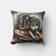 Amerikanische Indianerin mit Wolf in der Nähe von Kissen