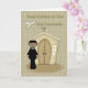 Erste Heilige Kommunion herzlichen Glückwunsch für den ethnischen Jungen mit Kirche und Taube.