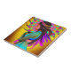 Hübsche abstrakte Kunst mit einer hübschen kleinen amerikanischen Indianerin mit Federn in ihren Haaren und einem farbenfrohen Hintergrund in Gelb, lila, Grün, aquamarin und Blau.
