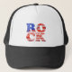 Die USA rot-blaue Flagge mit dem Wort ROCK. Ein patriotisches Typografie-Design für Rockliebhaber