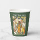 Diese Papiertassen sind dunkelgrün mit einer bestickten Textur und einem Amerikanische Ureinwohner-Weibchen in einem Wald mit Bogen und Pfeil und Tepe. Passen Sie Ihren Text mit den Vorlagen auf der Vorder- und Rückseite an.