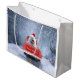 Amerikanischer Eskimo Hund im Schnee sitzen zu Wei Große Geschenktüte