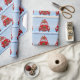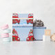 Amerikanischer Eskimo Hund in Auto mit dem Weihnac Geschenkpapier
