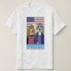 Parodie von Grant Woods berühmter Malerei, amerikanisches gotisches, nicht nur zwei strenge Pudel ersetzen die ursprünglichen strengen Menschen, aber die Füllen einer amerikanischen Flagge der Himmel.