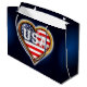Diese Herz geformte amerikanische Flagge macht das perfekte Geschenk für jeden möglichen Patrioten. Wenn Sie diese Entwurfspresse personifizieren möchten "fertigen Sie sie!" besonders an knöpfen Sie auf jedem Produkt, dann können Sie das Bild die Größe neu bestimmen und Ihre eigene Mitteilung unter Verwendung des Schriftartes und der Farben Ihrer Wahl sogar eintragen.