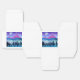 Eine abstrakte Landschaft mit einzigartigen Farben und Texturen, die eine Bergszene mit Bäumen und unangenehmen Nebel in lila, blauen, aquamarinen und zyanfarbenen Tönen zeigt.