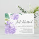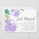 Elegante Blumeneinladungen nach der Hochzeit mit Wasserfarben und Grün in elegantem, blassem Lavendel. Passen Sie Ihre Hochzeitsbrunch-Details auf der rechten Seite an, verziert mit "just heiratet" in chic Kalligraphie-Skript. Die Einladungen kehren zu massivem, pastellfarbenem Minzgrün um.