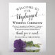 Dieses wunderschöne "ungesteckte" Zeichen bietet ein anmutiges Mittel, um die Gäste zu Ihrer Hochzeitsfeier zu empfangen, und fordert sie respektvoll auf, von der Benutzung ihrer Telefone, Kameras oder anderer Geräte abzusehen, die zu Störungen führen können. Das Schild zeigt eine raffinierte, mit aufwändiger Kalligraphie verzierte Gestaltung und eine bezaubernde, lang gestempelte Rose in Amethysttönen lila, die im Wasser mit sanften Gewölben reflektieren. Die individuell gestaltbare Botschaft vermittelt eine warme Einladung und ermutigt die Gäste, sich ohne Unterbrechungen voll und ganz an der Zeremonie zu beteiligen. Es Staaten: "Bitte schalten Sie Ihre Telefone, Kameras und Geräte aus, damit wir alle die Zeremonie ohne Unterbrechungen genießen können."