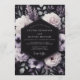 Embrace a dramatic and romantic aesthetic with this moody botanical arrangement. Set against a dark charcoal background, a lush composition of painterly white roses, pale lavender anemones, and soft thistles creates a striking contrast. This elegant design evokes a sense of gothic romance and sophisticated, somber beauty for your special day.