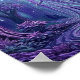 This surreal poster features an enchanted forest unfolds in a palette of deep violet, lavender, and midnight blue, creating an atmosphere that feels both luxurious and otherworldly. Towering trees frame the scene like elegant guardians, their twisting trunks and dense canopies forming a natural corridor that draws the eye toward the luminous center. In the heart of the composition, a mysterious floating figure rises with effortless grace, cloaked in flowing robes and crowned by a pointed hat, evoking the allure of magic, transformation, and untamed imagination. The entire image shimmers with a dreamlike texture, as if painted in layers of light and shadow. Cascading vertical streaks in the background suggest falling rain, ethereal energy, or a hidden waterfall of color, adding motion and depth to the scene. Below, concentric ripples spread across a reflective pool, anchoring the fantasy in a hypnotic focal point and reinforcing the sense of calm, power, and ritual. This is a world that feels premium, mystical, and immersive-an evocative visual built to captivate attention instantly. It suggests discovery, elegance, and a touch of the supernatural, making it ideal for a campaign that wants to feel bold, cinematic, and unforgettable. Finished in a layered oil acrylic painterly style.