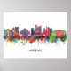 Elegante Aquarellskyline von Amiens, eine Stadt im Norden Frankreichs, geteilt durch die Somme. Es ist bekannt für die gotische Amiens-Kathedrale und die nahe gelegene mittelalterliche Glockenturm