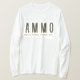 Dieser langärmelige T - Shirt zeigt die Worte "AMMO" in einem feinen Schriftart mit Goldbriefen schwarze Kontur, die das Akronym A.M.M.O. ausmacht, das für (Ambitual Movement Motivating Other) in diesem AMMO Apparel USA Akronym-Stil und Thema steht. Diese T-Shirts sind komfortabel, lässig und locker, aus 6,0 oz, 100% vorschrumpfter Baumwolle, mit doppelnadelgestepptem Boden und Ärmelhemen für extra Haltbarkeit. Unsere T-Shirts passen gut und tragen sich gut an jedem und jedem.