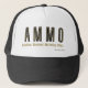 Dies ist ein LKW, der die Worte "AMMO" in einem feinen Schriftart zeigt, mit Goldbriefen schwarze Kontur, aus der das Akronym A.M.O. besteht, für das (Ambitual Movement Motivating Anderes) in diesem AMMO Apparel USA Akronym-Stil und Thema steht. Diese Hüte sind komfortabel, lässig einstellbar von 17 bis 24" mit 100% Nylonschaumfront und Nylonmesh Rückenlehne, ideal für den Alltag oder jeden besondere Anlass.