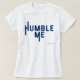 Dies ist ein T - Shirt für Frauen, der die Worte "Humble Me" in einem einzigartigen Vintagen Rand Druck-Schriftart mit schwarz Buchstaben blauen Kontur plus Akzent in diesem inspirierenden Zitat AMMO Apparel USA Stil und Thema zeigt. Diese T-Shirts sind komfortabel, lässig und locker, aus 100% Baumwolle gefertigt, mit doppelnadelgestepptem Boden und Ärmelhemen für eine besonders lange Haltbarkeit. Unsere T-Shirts passen gut und tragen sich gut an jedem und jedem.