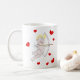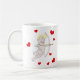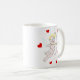 Kaffee-Tasse mit Cartoonillustration des Amors mit den Herzen, die einen Pfeil schießen