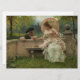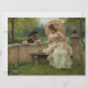 Dieses Design zeigt ein Gemälde des italienischen Künstlers Federico Andreotti (1847-1930). Es zeigt eine elegante junge Frau, die auf einer Steinbank in einem Parkland sitzt. Sie spricht mit ihrem männlichen Koffer, der neben ihr herumkauert. Die beiden Liebhaber haben ein romantisches Gespräch abseits der neugierigen Augen von Familie und Freunden. Die Dame trägt ein modisches weißes Kleid und hält einen Sonnenschirm, um sich vor der Sonne zu schützen. Der Herr trägt auch ein historisches Kostüm, das der Zeit angemessen ist. Auf der Bank neben der jungen Frau befindet sich ein Buch, das vielleicht die Liebe enthält, und einige rosa Rosen, die vielleicht von ihrem Bewunderer gegeben worden sind. Das Paar ist von schönen grünen Bäumen umgeben. Ein See oder ein Fluss fließen durch den Park.