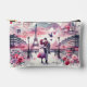 Dieser schöne Accessoires-Beutel zeigt ein Paar vor dem Eiffelturm mit einer Briefmarke auf der Bühne. Kunstkredit: Lynda McDaniel-Smith, 2024. Genießen Sie Ihren neuen Amour Liebe Letter Accessory Pouch!
