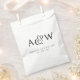 Ampersand Monogramm Moderne Schwarz-Weiß-Gastgeschenk Hochzeit Taschen. Herrliches Design mit Paarinitialen mit dekorativen Ampern und Liebe Herzakzent. Schwarz und Kohle Text auf klassischem Elfenbeinweiß. Personalisieren Sie mit Bride & Groom Monogram Initials, Names und Wedding Date Dieses moderne Design hat ein zeitloses traditionelles formales Gefühl geeignet für Hochzeiten jeder Jahreszeit. Alle Schriftart, Text, Farben sind anpassbar. Bitte kontaktieren Sie uns, wenn Sie Hilfe benötigen.