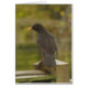 Karte mit Foto einer Amsel hockte auf einem Gartenzaunposten im Regen.