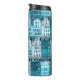Amsterdam Architektur, blaue Aquarelltextur. Thermosbecher