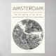 A minimalist city map poster of Amsterdam featuring clean line art and precise geographic coordinates.