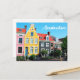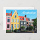 Amsterdam Holland Houses Travel Europe Postcard Amsterdam, die Hauptstadt der Niederlande, ist bekannt für seine malerischen Kanäle, die historische Architektur und die lebendige Kulturszene. Die Stadt besticht durch ihre einzigartige Lage in engen, verwinkelten Gassen, die von Gebäude aus dem 17. Jahrhundert gesäumt sind. Viele von ihnen sind heute Zuhause zu Museen, Galerien und Cafés. Die abwechslungsreichen Viertel der Stadt, wie das trendige Jordaan und das lebendige De Pijp, bieten eine Mischung aus Geschäften, Restaurants und dem Nachtleben. Die liberale Atmosphäre von Amsterdam spiegelt sich in den Cafés und dem Rotlichtviertel wider, was es zu einem einzigartigen Reiseziel für Besucher macht. Amsterdam verbindet Geschichte mit modernem Charme und ist somit ein beliebter Ort für Touristen aus aller Welt.