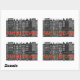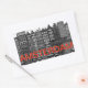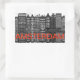 Leuke sticker met de tekst Amsterdam in rood met traditionele Amsterdamse grachtenpandjes op de achtergrond.