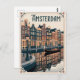 Entdecken Sie den Charme Amsterdams mit dieser Vintag minimalistischen Postkarte. Das Design besticht durch seine symbolträchtigen Elemente wie die malerischen Kanäle der Stadt, geschichtsträchtige Häuser und klassische Fahrräder. Freuen Sie sich auf saubere Linien und subtile Farbtöne, die eine zeitlose Eleganz hervorrufen. Perfekt für Sammler, Reisende und Fans von Amsterdams einzigartiger Attraktion.